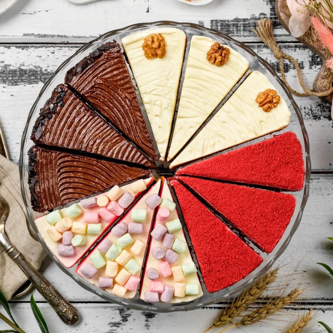 Ассорти тортов: Бабл гам, Морковный торт, Красный бархат, Прага.