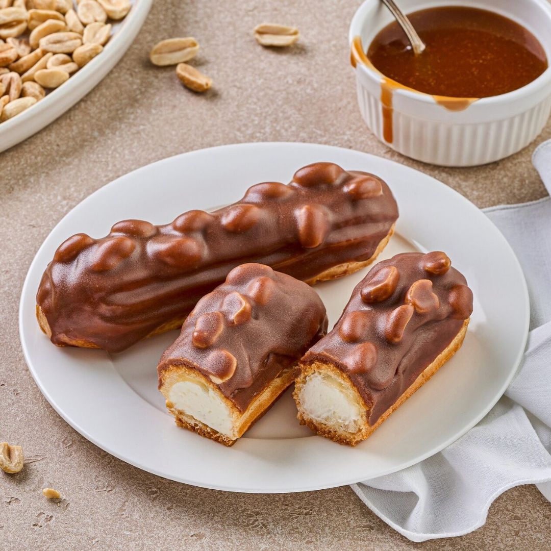 Идеальное сочетание пирожного и вкуса любимого шоколадно-арахисового батончика. Нежное заварное тесто со сливочным кремом, мягкой карамелью, декорированное жареным арахисом и молочным шоколадом.